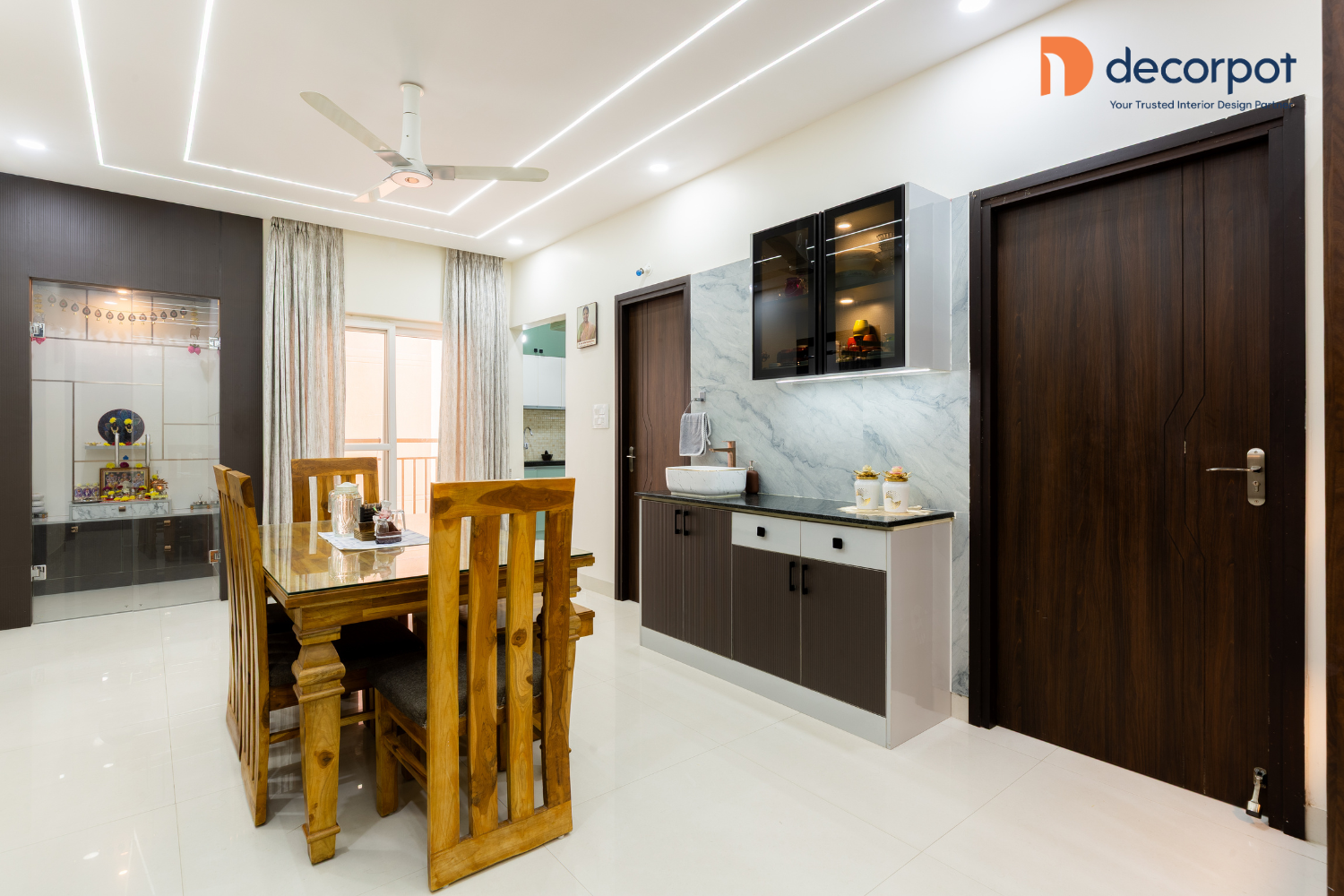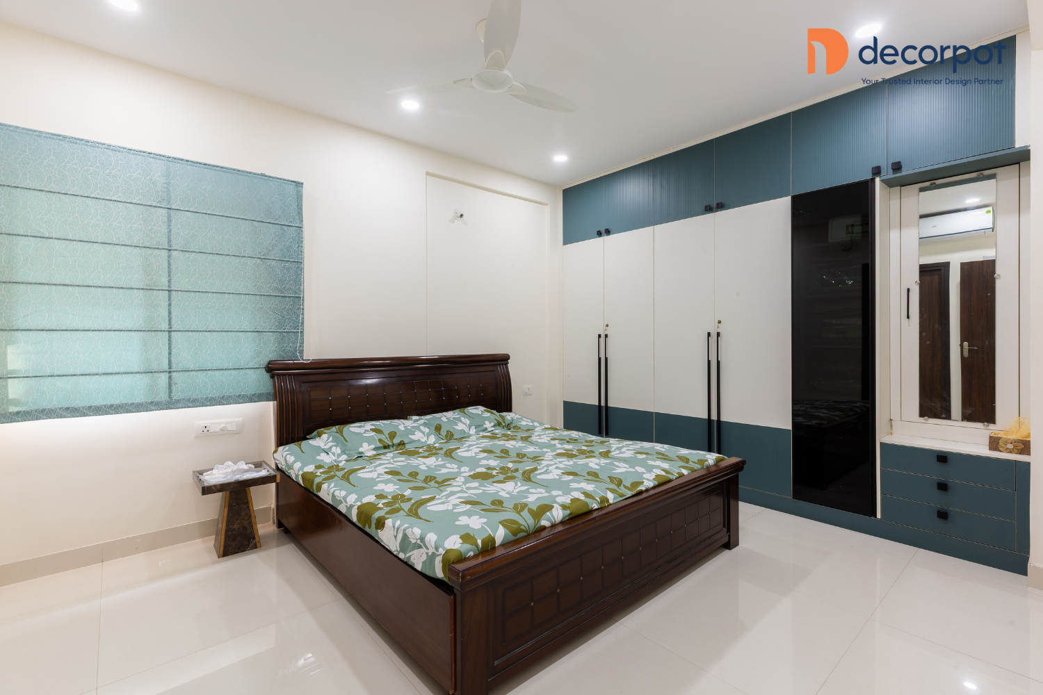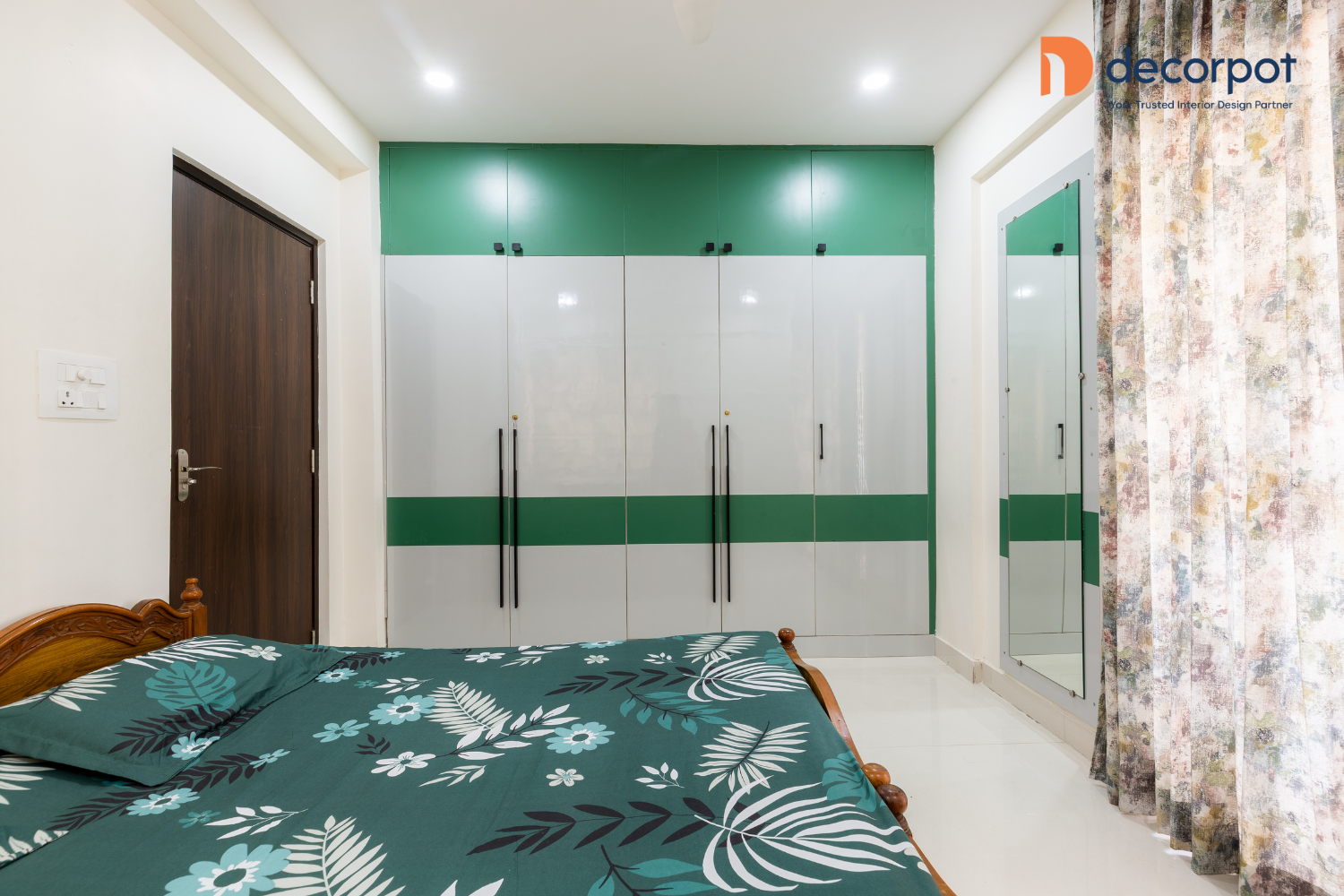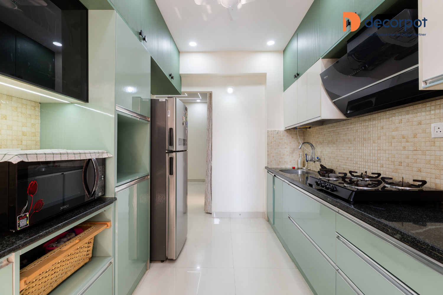 The interior designers in Hyderabad at Decorpot shaped the home with a clear focus on functionality and visual balance. In the living room, the back panel was designed to complement the existing TV unit, helping the space feel complete without replacing what already worked well. Across the bedrooms, floor-to-ceiling hinged wardrobes brought in practical storage, while the kids’ bedroom also included a dedicated study corner for everyday use. The parallel modular kitchen with a granite countertop and wicker basket storage was planned for smooth movement and efficient organisation. The result was a home that felt simple, organised, and thoughtfully put together, reflecting Decorpot’s approach to end-to-end home interiors with quality materials and dependable execution.