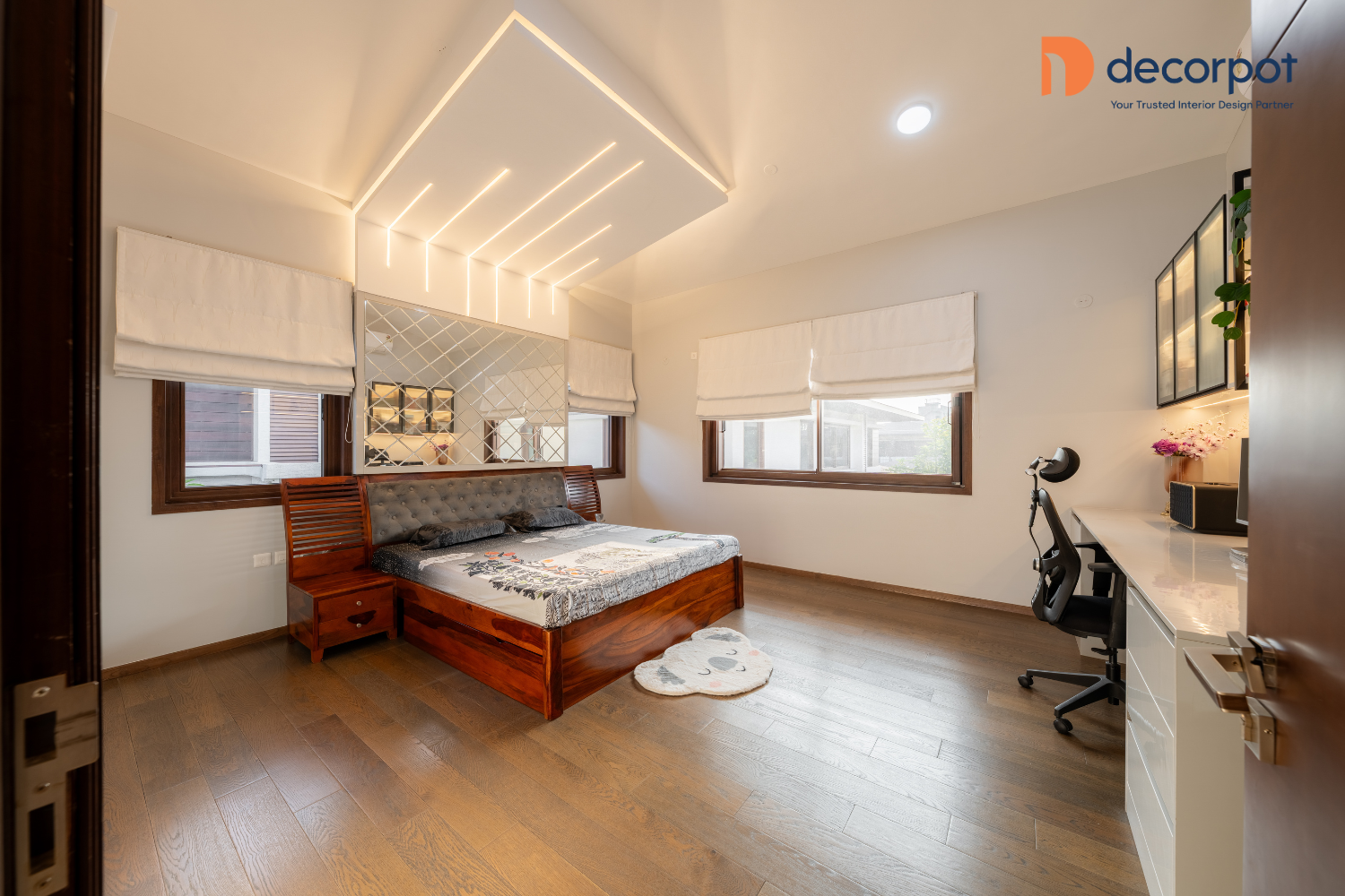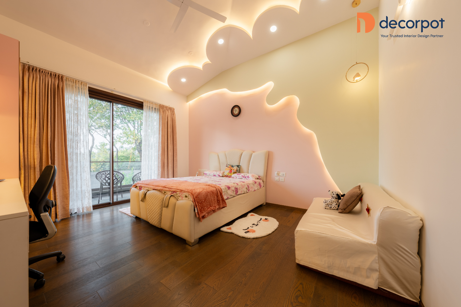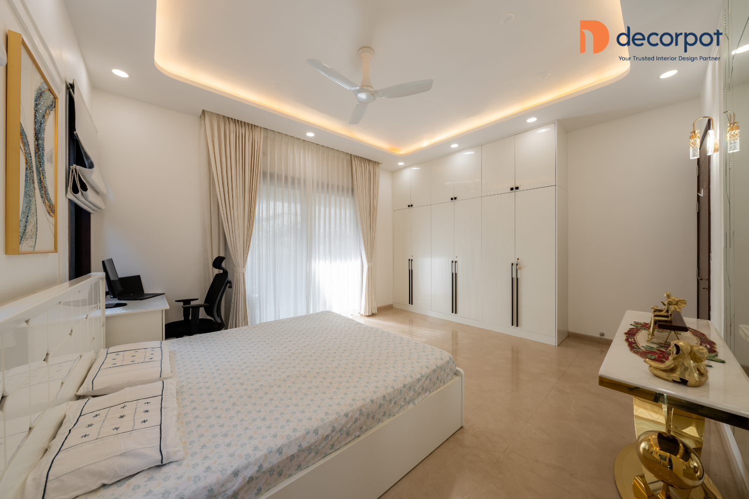Across the bedrooms, study units, floor-to-ceiling wardrobes, and thoughtful storage kept the spaces practical and organised, while the daughter’s room was finished in a warm pink-and-white theme with a study unit and sliding door wardrobe. The result was a villa that felt polished, personal, and easy to live in. This work is a reflection of Decorpot’s approach to end-to-end interior design with clarity, care, and thoughtful execution.