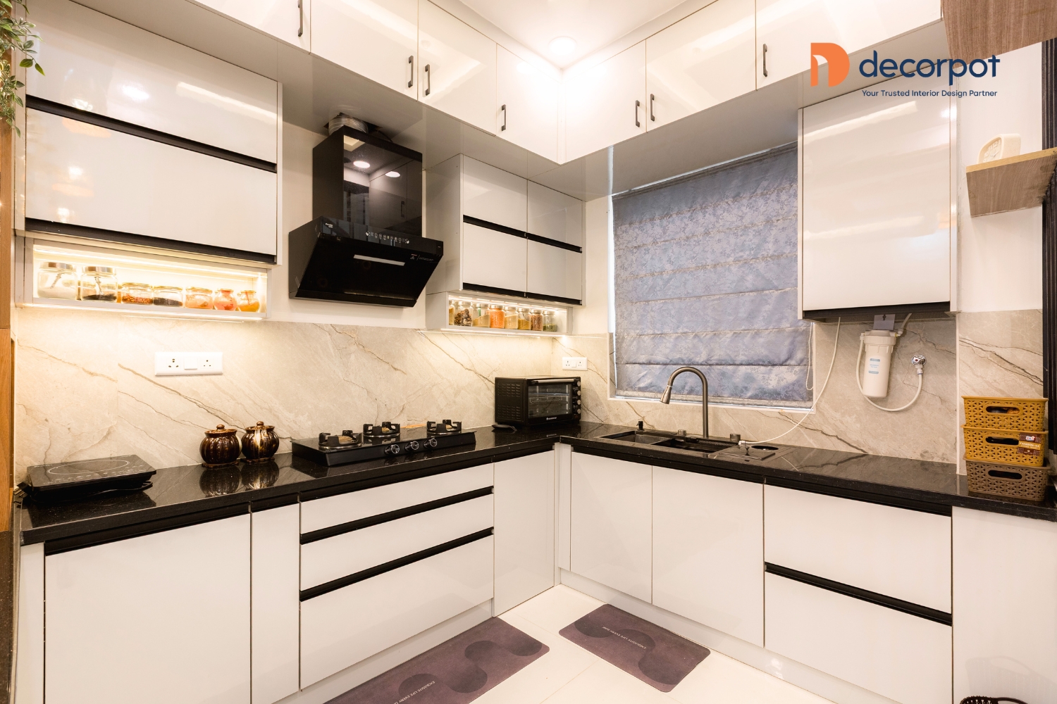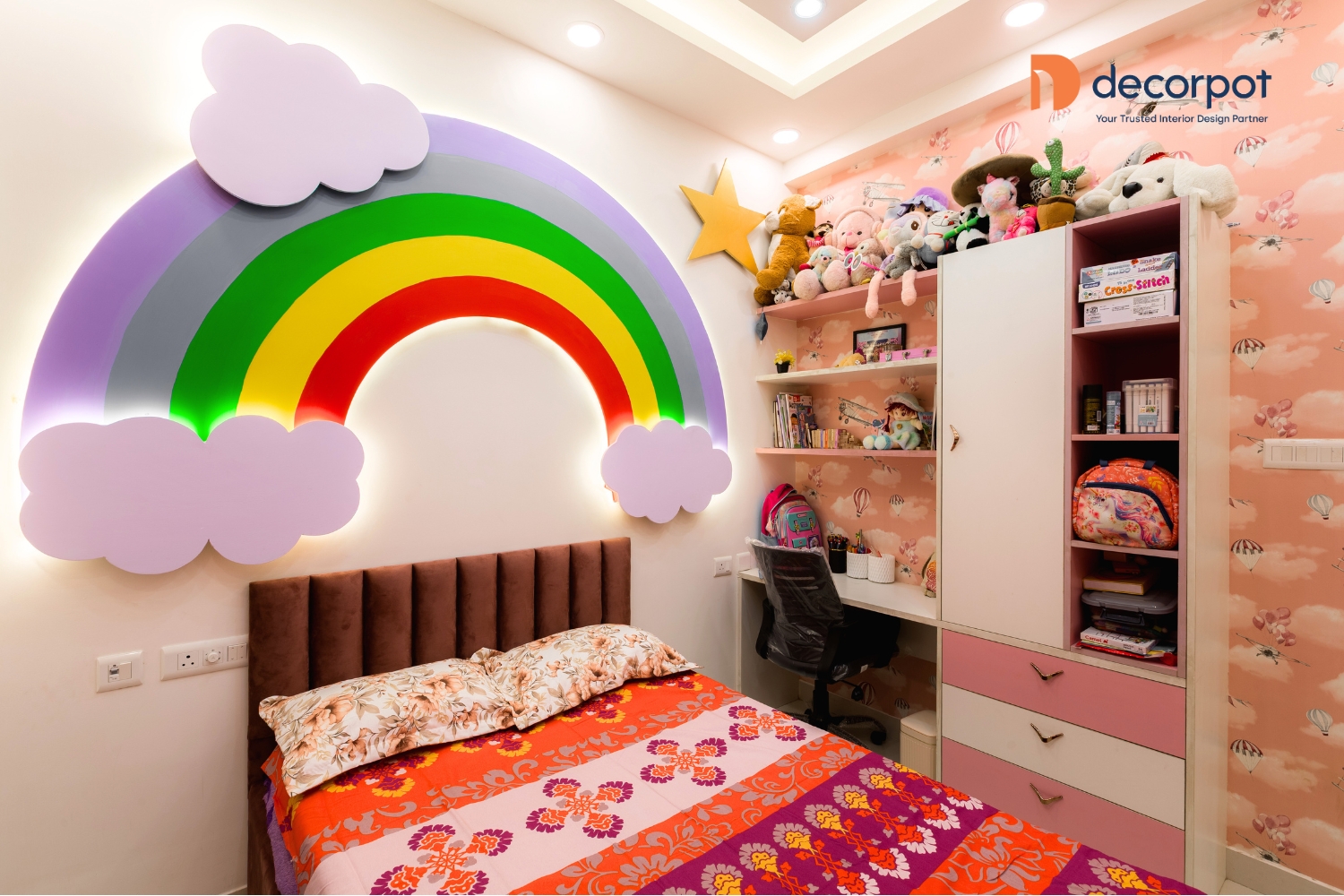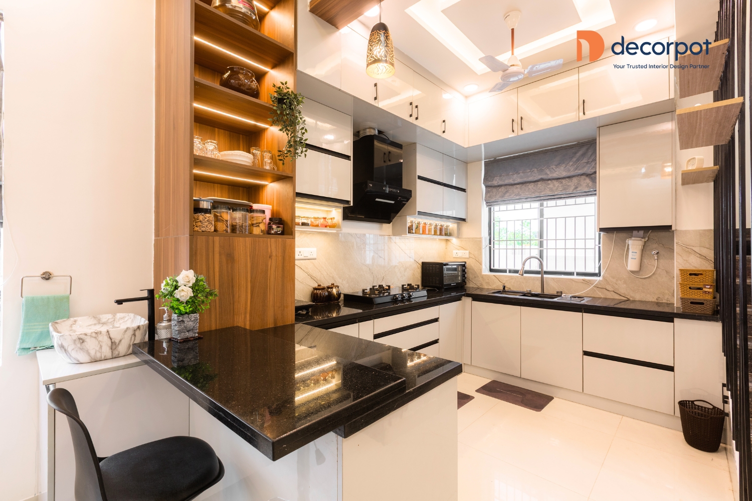 Decorpot brought this vision together through a balance of thoughtful design and practical planning. The TV unit with tinted glass added a refined focal point to the living room, while the modular kitchen with multiple storage options and a breakfast counter made daily use easy and efficient. Across the bedrooms, our interior designers in Chennai added features like floor-to-ceiling sliding wardrobes, a study table with storage, a sliding wardrobe with lacquered glass shutters, and a cozy reading nook, which helped each space feel tailored to the family’s lifestyle. With carefully planned home interiors in Chennai, the result was a 4BHK home that felt warm, organised, and easy to live in - reflecting Decorpot’s approach to end-to-end interior design with clarity, comfort, and thoughtful execution.