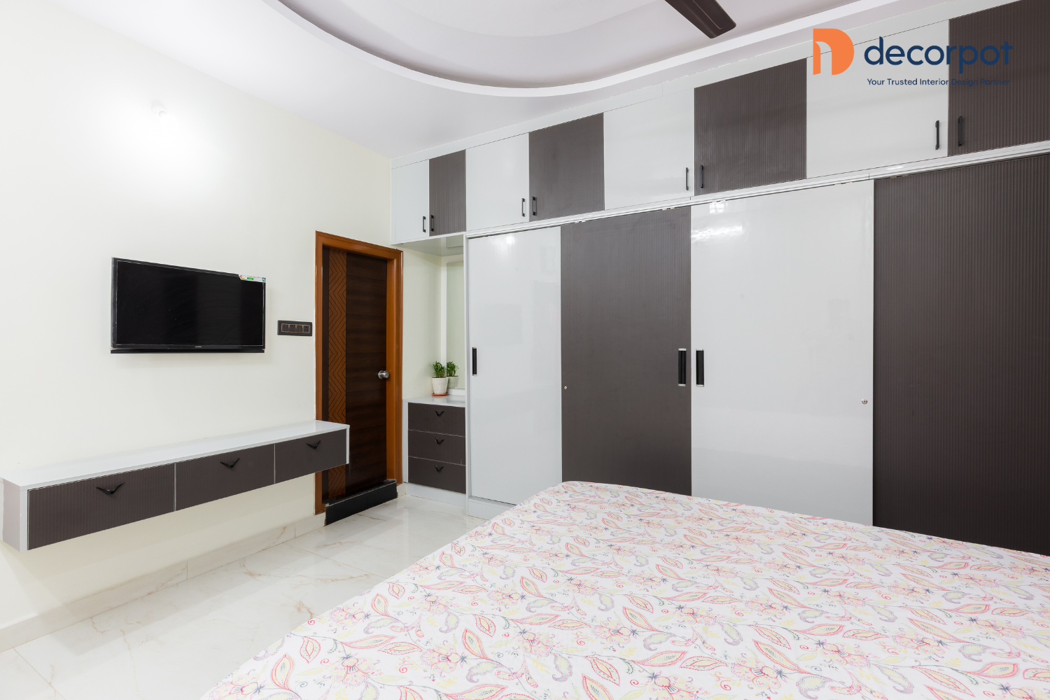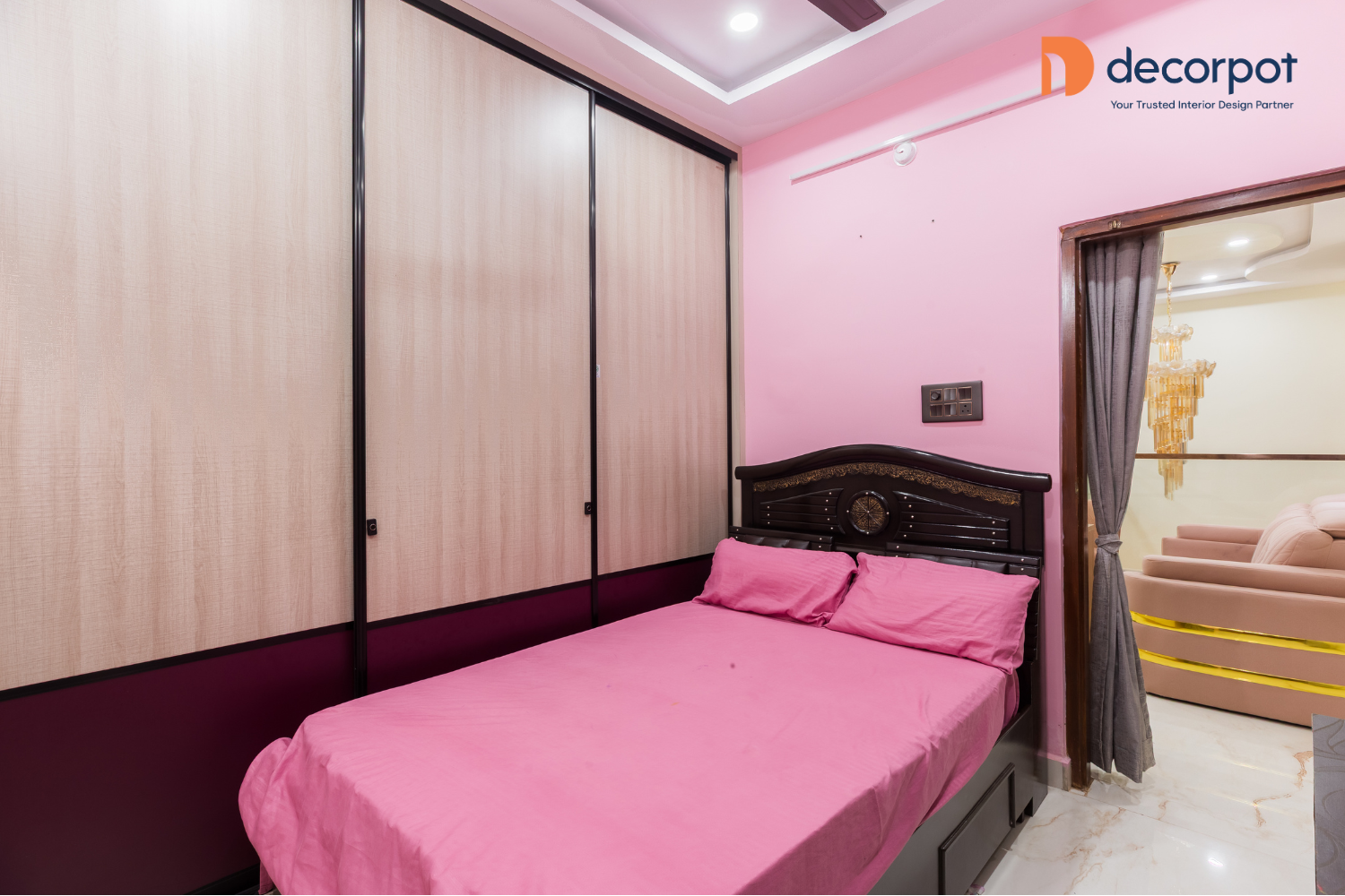 Across the bedrooms, storage was planned with equal attention to ease and aesthetics. The master bedroom has featured a sliding wardrobe with loft storage, the guest bedroom has had a hinged wardrobe, and the kids’ room has included a floor-to-ceiling sliding wardrobe, which has helped each room feel organized without losing visual balance. The result was a home that felt layered, functional, and thoughtfully designed, reflecting Decorpot’s approach to end-to-end interiors with clarity, detail, and everyday comfort.